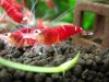 Da sitzt ein Garnelenbaby. Mit etwas Phantasie erkennt Ihr es auch.