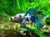 Der kleine bunte Fisch ist recht agil und nun ja, sehr wählerisch bei der Auswahl der Mahlzeiten. Lebende rote und weiße Mückenlarven mag er gern. Artemia LeFu hingegen interessiert ihn kaum. Und ja, er muss auch mal was Anständiges essen, ich habe höchstens 10 Tage gebraucht, um ihm klar zu machen, dass auch Granulat essbar ist. :D