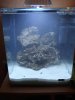 Und zwar habe ich hier ein 30er Nano Cube stehen, allerdings im Moment als Aquaterrarium für Vampirkrabben. Allerdings läuft das nicht so gut, ein Nano Cube ist einfach furchtbar unpraktisch als Aquaterrarium. Die Krabben würden dann also umziehen.