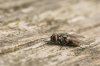 Auf dem Brückengeländer, die Fliege, sie liebt es sonnig und warm,