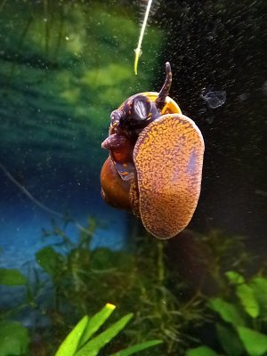 . Auf dem 3. Bild ist eine meiner Wildfangschnecken, hier bei einem ihrer Ruhepausen nach einem ausgiebigen Mahl und reichlich Hinterlassenschaften.Ja, auf Steinen, Wurzeln, Blättern, Pflanzen und an den Scheiben sind die kleinen Jungschnecken bei mir meistens unterwegs. Den Bodengrund meiden sie sonst meistens. Das war bei dem Uraltsoil der Fall und beim Manado noch mehr.Vielleicht lege ich auch einfach paar 8-12 mm Kiesel rein.