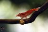 OK, dann zeige ich auch mal ein paar Bilder von meinen Red Fire und/oder Sakuras. Ich habe die Tiere aus eine Beckenauflösung bekommen. Ein Eimer mit trüben Wasser in dem sich neben den als Red Fire/Sakuar bezeichneten Garnelen auch noch Red und Black Bees, Zwergpanzerwelse und Antennenwelse befanden. Ein bunter Mischmasch also. Ich hab das ganze erstmal in eine Glasschüssel umgefüllt und saß dann ca. 3 Stunden davor um aus zu sortieren. Die Red und Black Bees befinden sich in jeweiligen Artenbecken, die Fische in unserem großen Küchenaquarium und alles was Rot war ist in meinem 54 Liter-Becken im Schlafzimmer. Trotz des Streßes während dem Transport und dem Umsetzen, hatte ich erstaunlich wenig Verluste, was zeigt wie robust gerade die Roten sind. Mittlerweile sind sie seit 2 Monaten bei mir und vermehren sich prächtig. Gestern konnte ich im Becken 41 Garnelen zählen (davon 4 tragende Weibchen). Ich tippe das sich 50% der Tiere verstecken, somit käme ich auf einen Bestand von rund 80 Stück :) Da die Tiere auch bevor sie in den Eimer kamen zusammen gehalten wurden, ist von einem reinen Red Fire oder Sakura Stamm wohl nicht mehr auszuzgehen. Aber das macht mir auch nichts aus, ich erfreue mich an dem roten Gewusel neben meinem Bett. Die Tiere haben meine allabendliche Lektüre schon zu 50% verdrängt :D