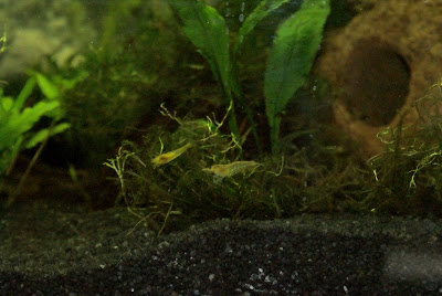 Gestern war ich meine Yellow Fire-Garnelen von privat abholen. Für mein 120l-Becken hab ich gut 30 Stück geholt. Was auch nötig war, denn ich seh maximal 8 Stück, der Rest hält sich (noch?) versteckt.