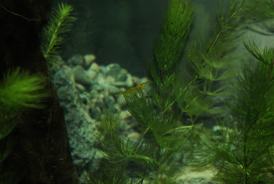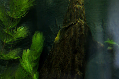 Zuerst waren sie furchtbar wuselig, sind die Scheiben hoch und runter und quer durchs Becken - und ich dachte schon das schlimmste, dass vielleicht mit dem Wasser was nicht stimmt, Vergiftung...weiß der Geier! Aber offenbar war das nur der erste Schock, den schon nach einer Dreiviertelstunde waren sie recht ruhig und fingen an, jedes Steinchen im Becken umzudrehen, um nach fressbarem zu suchen.